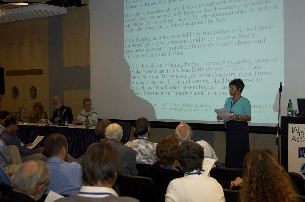 It troubles me that the revisions made to the IAU’s original proposal have been constrained to defining bodies in our solar system rather than being applicable universally. Surely we cannot extrasolar planets to conform to whatever we find psychologically or culturally satisfying here in our cosmic neighborhood. I’d rather wait another three years for a more functional set of guidelines than see a resolution adopted shortsightedly.