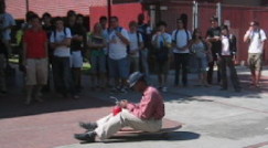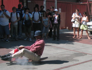 How to pass a few minutes outside on a very hot day? Do a demo in front of 90 students when you’re not sure of your equipment, of course! This was in the cause of demontrating Newton’s Laws of Motion in my Physics 100 class today. I’m actually moving backwards at a good speed in this shot.
