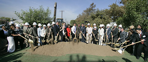 You’ve possibly read about my excitement about the long-awaited Expo line, connecting downtown to USC and the Science, Natural History (and other) Museums, and then connecting out to Culver City, and ultimately to Venice. I’ve blogged this here and here. They broke ground on the project two days ago. See here and here. Here’s a picture (yes, construction workers wear business suits in LA. They are very image-conscious here, and you never know when a casting director might be looking):