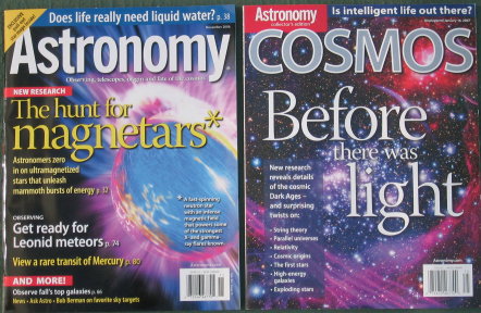 These magazines look like they’ll be great. (Click for larger). The November issue of Astronomy, with a special collection called “Cosmos”. Full of good-looking stuff.