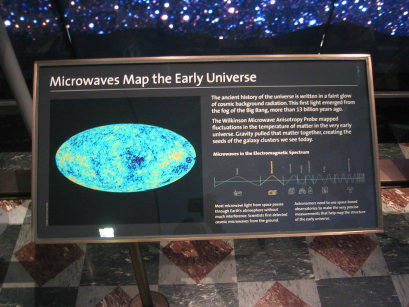 They started us out at the side entrance so we saw the underground “Gunther Depths of Space” parts first. The displays down there are very varied. Everything from nice details on asteroid impacts to vast displays of large chunks of the universe…. The largest such chunk is called “The Big Picture”, which is basically the whole back wall of the underground space – 150 feet by 20 feet – showing a very large field of view of stars, galaxies, and the like. There’s even a telescope to view it with. It is split down there into two portions, and upper and a lower. The telescope perches on the upper part.