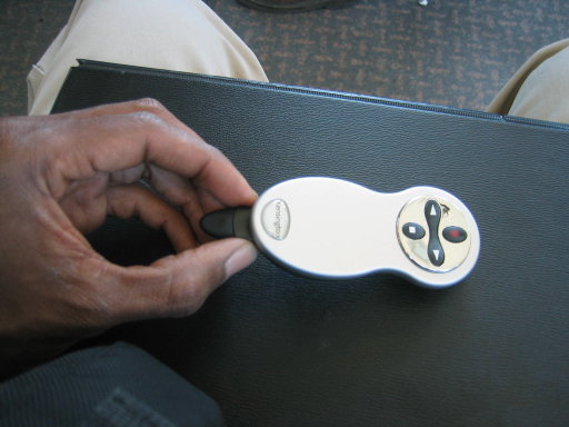 While coming into work today just before lunchtime, I carried with me one of those little remote controls for today’s seminar speaker to use to click through his computer slides (I highly recommend such a remote, by the way, as they completely free you from having to stand next to the computer, often resulting in a better presentation for all concerned).