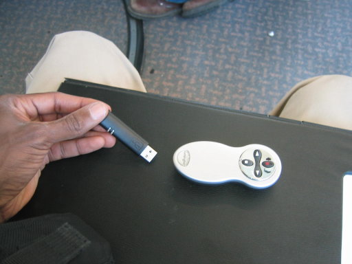 looks as if I have exactly the same remote control 😉 Kind of funny, since I bought it in Germany. The guy told me that thing is called a ‘presenter’. You are totally right, it makes a talk go much more smoothly, since one doesn’t have to hang in front of the laptop to hit space all the time. (So far it has worked with literally every laptop I have plugged it in.)