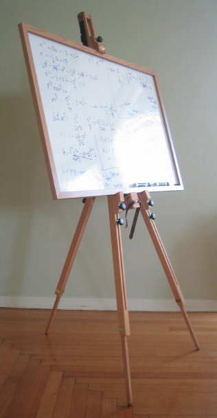 I know, you were expecting something fancy and probably electronic, weren’t you? Sorry. Well, I’m an old-fashioned type at the core. It might not seem like much, but such things are in fact the main tools for my type of research. I don’t have a lab with fancy equipment like lasers and vacuum pumps and microscopes and the like. I just have a tiny office, notebooks, pens and pencils, etc. So one has to maximize these assets (as it were) as much as one can. It’s good to have a bigger board for working at home (although it is not as big as the one I thought about getting but changed my mind at the last minute!), and especially good to have a good easel for this and other purposes. The easel setup allows me to move it around easily, either stand at it or sit at it, and it can go outdoors onto the patio or into the garden with ease.