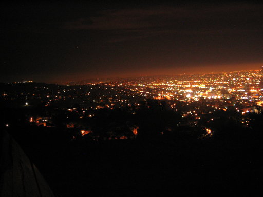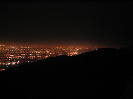 The next stop – meteors. There’s nothing like a romantic evening under the stars – even if it’s a solo outing. I went to Runyon Canyon Park of course, getting there at about 1:45am. As I’ve mentioned before, it is another of those LA gems that most people don’t know about. Just a few blocks beyond the heart of the Hollywood tourist trap (Mann’s Chinese Theater and so forth) is the entrance to the park. It’s not a tidy city park like a New York or London or Dublin green square. No, instead it is an amazingly convenient rugged hiking spot that rapidly takes you into darkness, solitude (at this time of night) and spectacular views of the city. Multi-component click-able panorama below.