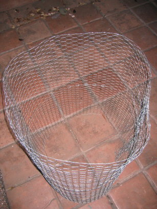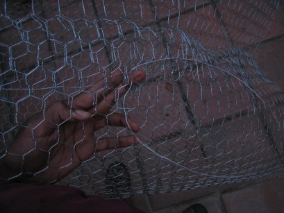 So, phase one: Containment. Well everything is going to be kept together with a cylinder of chicken wire, and so measurement of the desired radius [tex]r[/tex] followed by a quick computation ([tex]d=2\pi r[/tex]) to give me the length I needed to cut, and I was away. Shortly after I realised that my measurements were to be determined by the size of the mouth of the large trash bags I’d bought to add as the liner of the containment cylinder. So I ended up readjusting everything to fit that. I cut everything a bit big to allow for the overlap I needed to sew the thing into a cylinder after cutting.
