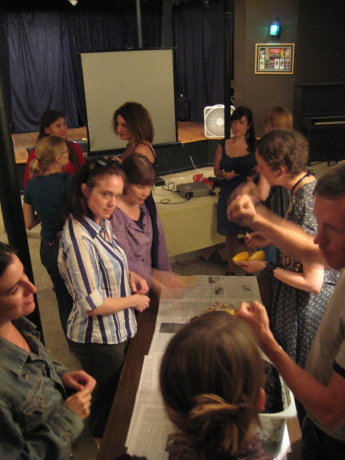 After a while, Christine clapped her hands to get everyone’s attention, introduced the speakers, who proceeded to do an excellent presentation of some of the simple urban homesteading practices they want to introduce people to, along with other tips on foraging around the city for food (I’ve blogged about the Fallenfruit people before, right? Free produce growing around the city…), gathering tasty herbs in the park for salad, or even annexing a bit of sidewalk to grow things on, or joining a community garden. Erik demonstrated a number of useful practical things (actually, lots of nice examples of basic everyday science being put to good use in making self-watering containers, knowledge about what plants need to be healthy, and so forth. And this is without even getting to things you can do simply with solar energy, such as cooking directly using sunlight…)