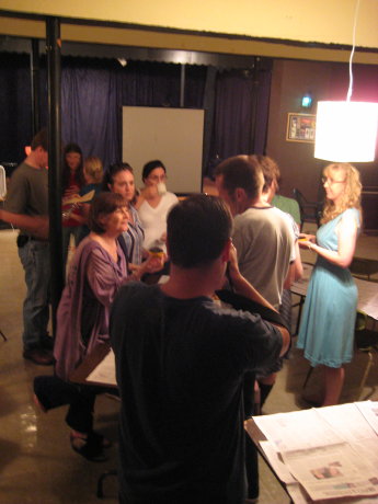 So I showed up there (it is held in the basement of a church in Los Feliz – so rabid fundamentalist atheists might want to chill out a little) at the appointed time, gave the password at the door, and got my $5 discount for not driving. I felt guilty and sympathized with some of my friends (who I was pleasantly surprised to see there – Aimee Bender and a group who car-pooled over from much further away) who could not get a discount even though they carpooled (Ahem!, -Ok, I can see that’s harder to provide evidence of though-)) and we all went down the steps to the dark (relatively) space.