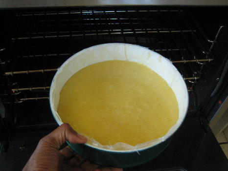 I try to prepare my pans first, when baking. I’m using a spring-form pan today, for variety (not needed for this especially) and I’ve dabbed the sides with butter to allow some greaseproof paper to stick to it. I then buttered that paper and powdered the insides with sugar, knocking off the excess.