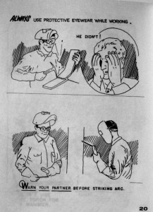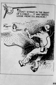In addition to the CMC staff handbook, I also got the mechanical crew handbook, which was originally drawn by Jim McEleny, and then revised in 1974 by Ted Mullings, who I told you about in the earlier post. The pages are more sparsely done in this one, but there’s still some great humour here and there… (Click for larger views….)
