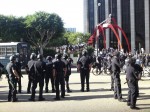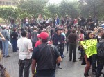 Anyway, both the protesters and the police were out in strength… a lot of police, in fact. Also lots of on-lookers, unsure of where and how close to stand. I stood back for a while as well, and then realized that there was no real issue with getting close and listening to what people were saying. So I did, and took some pictures for you: