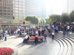 I decided to wander downtown in search of the remnants of the Occupy LA march that started this morning at 4th and Figueroa. It was the two-month-iversary today and so there were special actions to mark the day. I got off the Dash F bus (took it up from the USC campus) and wandered up Fig, finding no clues. I wandered around for a bit more, but then I noticed the real clues were in the sky above. It’s something I’ve used before to figure out where the activity of interest is – look into the sky and watch the pattern of helicopters. There’ll be two types… The still ones up high are going to be TV, monitoring at a certain fixed distance… then there’ll be a lower one circling and moving around more. That’ll be the police, and at the center of that circle is what you are looking for. It was over the very center of the newer part of downtown, so I figured the movement was occupying right in the financial centre, and I was correct. Just North of Hope and 4th, or thereabouts, at the Alexander Calder sculpture (right where the opening pages of one of my stories for the graphic novel takes place, in fact (see here), so I know the area well from my location scouting)…
