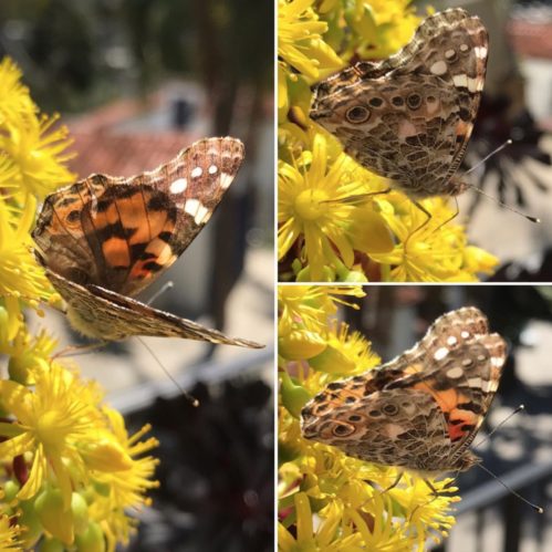 You may have heard that there are an estimated 1 billion Painted Lady butterflies passing through the Los Angeles area right now. Just after sunrise this morning I watched them begin their daily swarming. Fascinating! Later, just after lunch, I captured some quick shots of this one for you…